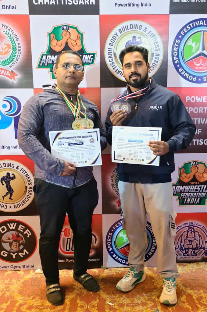 लोरमी – भिलाई में राज्य स्तरीय पावर स्पोर्ट्स फेस्टिवल ऑफ छत्तीसगढ़ का आयोजन हुआ जिसमें पावरलिफ्टिंग प्रतियोगिता में लोरमी के युवा लिफ्टर प्रतियोगिता में भाग लेते हुए अपने उच्च कोटि का प्रदर्शन करते हुए गोल्ड एवं कांस्य पदक जीतकर मुंगेली यूनिट की तरफ से खेलते हुए लोरमी का नाम रौशन किए । 105 केजी वर्ग में में खेलते हुए जयदीप दास वैष्णव ने कुल 430 केजी भार उठाकर चार गोल्ड एवं दौलत जायसवाल ने 74 केजी वर्ग में खेलते हुए टोटल 435 केजी भार उठाकर दो कांस्य पदक अपने नाम किए साथ ही साथी प्रथम गुप्ता ने प्रतियोगिता में अपना दमखम दिखाया उत्साह वर्धन के लिए साथी रजनीश यादव उपस्थित रहे। यह पूरी प्रतियोगिता सेक्टर 6 भिलाई में आयोजित हुआ। सभी प्रतिभागी लोरमी के इनडोर जिम में अभ्यास करते है।