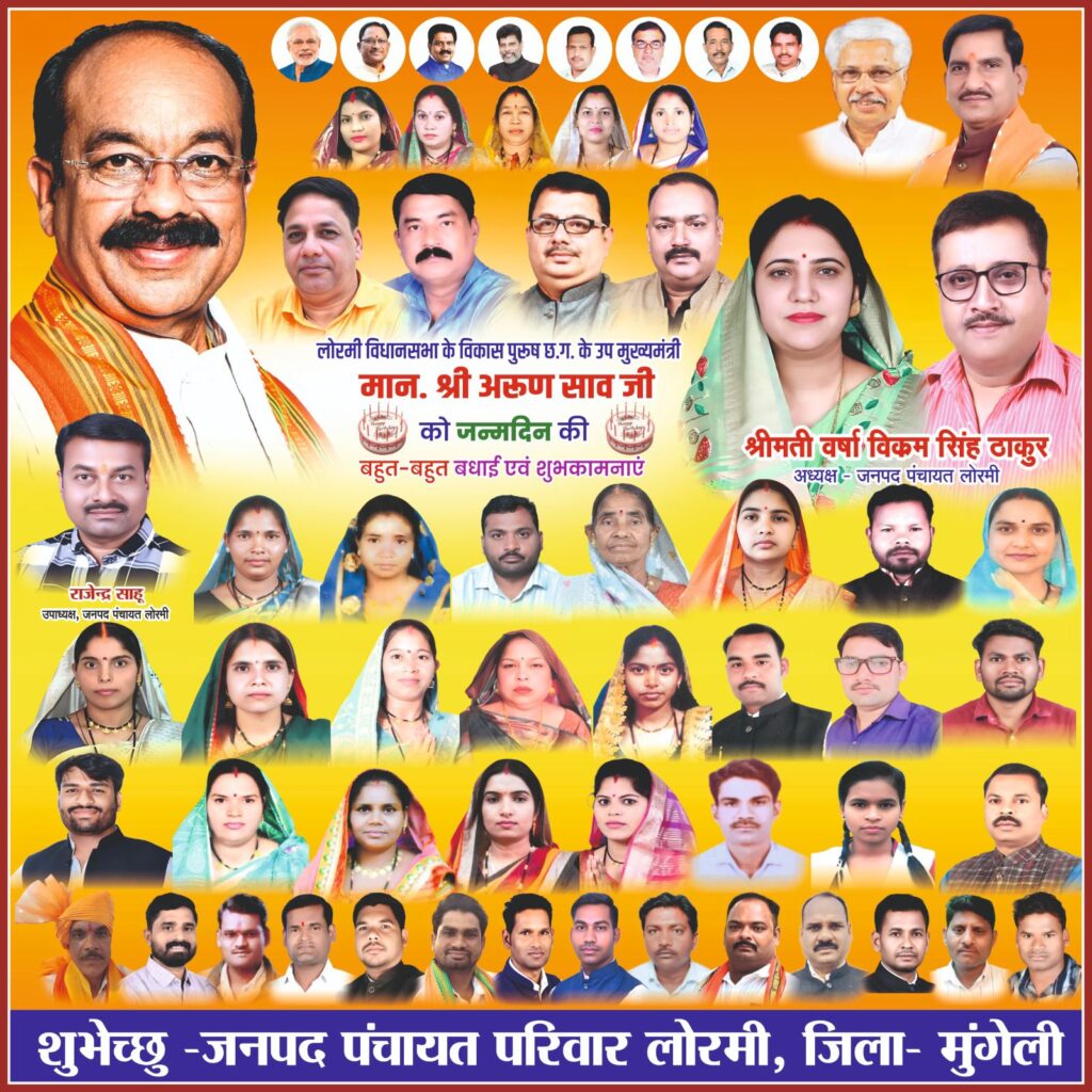 लोरमी – छत्तीसगढ़ के उपमुख्यमंत्री व लोरमी विधायक अरूण का जन्मदिवस लोरमी विधानसभा के हाईस्कूल मैदान में दिनांक 25 नवम्बर को हाईस्कूल के मैदान में मनाया जाएगा जिसके लिए कार्यकर्ताओं ने जगह जगह स्वागत की तैयारी किया जा रहा है श्री साव के जन्मदिवस के अवसर पर सांस्कृतिक कार्यक्रम सुनील सोनी नाइटस का आयोजन रखा गया है वही भाजपा मंडलो व विभिन्न समाजिक संगठनों, व्यपारियो के द्वारा स्वागत किया जाएगा।