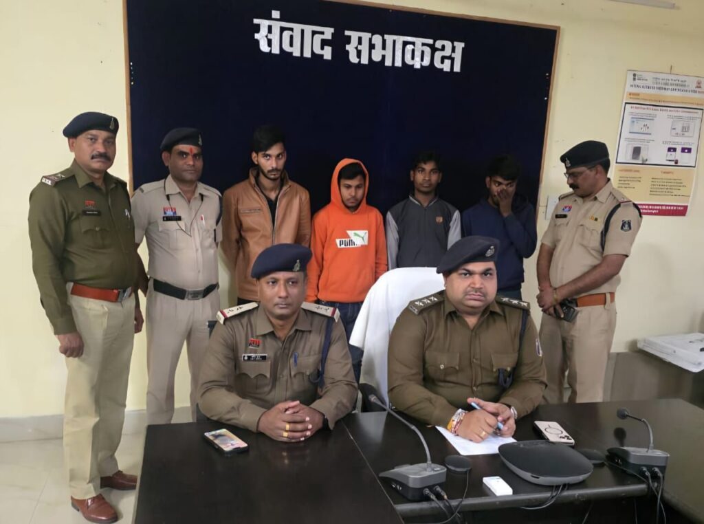 1.समीर भास्कर पिता बुधरूदास भास्कर उम्र 20 वर्ष 2. देवप्रसाद माथुर पिता मनोज माथुर उम्र 19 वर्ष 3. इन्द्रेश उर्फ सुरज बंजारे पिता माखन बंजारे उम्र 20 वर्ष सभी साकिनान ग्राम अतरगवां थाना नवागढ़ जिला बेमेतरा 4. मोहम्मद नवाब उर्फ अरमान पिता मोहम्मद नसीम उम्र 21 वर्ष साकिन हीरालाल वार्ड दाउपारा,लोरमी रोड मुंगेली थाना मुंगेली जिला मुंगेली (छ0ग0) व 01 अपचारी बालक
