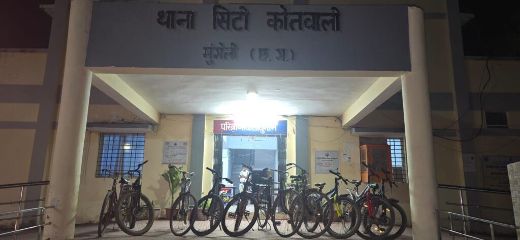 प्रकरण मे मुंगेली पुलिस अधीक्षक श भोजराम पटेल के द्वारा जिले के समस्त थाना/चौकी प्रभारियों कों निर्देशित किया गया कि जिला मुंगेली मे हो रहे छोटी- छोटी चोरियों पर ध्यान नही देने पर आम लोगो मे पुलिस के प्रति सोच विपरीत होना एवं पुलिस की छबि सुधार करने हेतु नगर मे हो रहे सायकल चोरी को विशेष तौर पर चोरी गये सायकल की बरामदगी कर कार्यवाही किया जावें। जिसके परिपालन मे अति.पुलिस अधीक्षक नवनीत कौर छाबड़ा एवं अनुविभागीय अधिकारी मयंक तिवारी के मार्गदर्शन पर थाना सिटी कोतवाली मुंगेली की पुलिस टीम द्वारा लगातार शहर के सभी जगहों पर मुखबीर लगाया गया। पतासाजी के दौरान ग्राम लालाकापा मे एक व्यक्ति रेंजर सायकल ब्रिकी करने हेतु ग्राहक तलाश रहा है, ग्राम लालाकापा मे धनकुमार उर्फ धन्नु बांधडे पिता स्व. जनकराम बांधडे उम्र 27 वर्ष निवासी हेड़सपुर थाना सिटी कोतवाली मुंगेली को हिरासत मे लेकर बारिकी से तथ्यात्मक पुछताछ करने पर एक रेंजर सायकल सिल्वर कलर कीमती 5500/- रूपये को दिनांक 04.11.2025 को चोरी करना बताया व मुंगेली शहर क्षेत्र में घूम घूमकर अन्य जगह से करीब 09 नग सायकल जिसमें 06 नग रेंजर सायकल एवं 03 नग 22 इंच का हिरो सायकल पुराने इस्तेमाली किमती लगभग 18000/-रूपये को चोरी करना बताया है उक्त कुल 10 नग सायकल कीमती 23500 रूपये को जप्त कर आरोपी धनकुमार बांधड़े के द्वारा चोरी करना कारित करना पाये जाने से विधिवत दिनांक 11.11.2025 को गिरफ्तार कर न्यायिक रिमाण्ड पर जेल दाखिल किया गया।