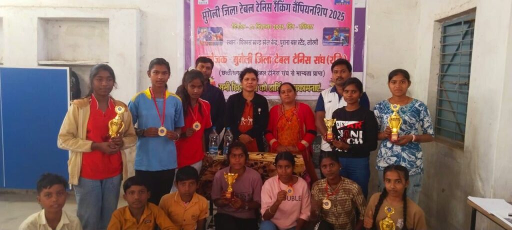 लोरमी – मुंगेली जिला टेबल टेनिस संघ के तत्वधान में एक दिवसीय आयु 13 वर्ष , 15 वर्ष एवम 17 वर्ष जिला रैंकिंग बालिका टेबल टेनिस चैंपियनशिप का आयोजन दिनांक-21 दिसम्बर दिन रविवार को खेल केंद्र लोरमी में आयोजित किया गया। प्रतियोगिता में मुख्य अतिथि श्रीमती मनीषा पाटले , विकास खण्ड शिक्षा अधिकारी लोरमी एवम आयोजन प्रमुख मुकेश सिंह राठौर उपस्थित थे ।