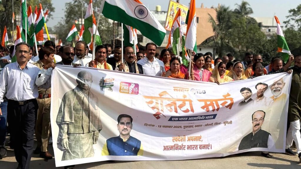 कलेक्टर कुन्दन कुमार ने कहा कि यह यात्रा ऐतिहासिक है। बच्चे, जवान, बुजुर्ग सभी ने एक सूत्र में बंधकर इस यात्रा में उत्साह से भाग लिया। यूनिटी मार्च का यह दृश्य भारत की एकता और अखंडता को दर्शाता है। साथ ही प्रधानमंत्री नरेन्द्र मोदी के 2047 तक विकसित भारत के सपने को साकार करने की दिशा में सार्थक कदम है। इस दौरान पुलिस अधीक्षक भोजराम पटेल, जिला पंचायत सीईओ प्रभाकर पाण्डेय, नगर पालिका लोरमी के अध्यक्ष सुजीत वर्मा, जनपद पंचायत अध्यक्ष श्रीमती वर्षा विक्रम सिंह, जिला अध्यक्ष दीनानाथ केशरवानी, गुरमीत सूलजा, धनीराम यादव, विनय साहू, वर्षा विक्रम सिंह, सुजीत वर्मा, अंजना देवी, शांति देवकरण भास्कर, रामेश्वर बंजारे, ससंजय रत्ना काठले, अनिता साहू, सावित्री राजपूत, राजेन्द्र साहू, डॉ अशोक जायसवाल, राकेश दुबे, रवि शर्मा, दिनेश साहू, सुशील यादव, महाजन जायसवाल, लक्ष्मी सेवक पाठक, लेखराज ठाकूर, प्रदीप मिश्रा, अशोक साहू, विश्वास दुबे, रिक्की सलुजा, घँशु राजपूत, सोहन डड़सेना, राजेन्द्र साहू, दिनेश कश्यप, नरेन्द्र खत्री, अभिषेक पाठक, शिवशंकर यादव, घनश्याम यादव, आलोक शिवहरे, रवि शुक्ला, दरबारी यादव, जवाहर दिवाकर, नरोत्तम राजपूत, देवेन्द्र केशरवानी, धनश्याम खत्री, विकास केशरवानी, नितेश अग्रवाल, हितेश सापरिया, दुष्यंत खत्री, मुकेश जायसवाल, संदीप सोनी, तामेश्वर साहू, बादल मौर्य, अशोक शर्मा, खदानन्द कश्यप, छेदु यादव, नरेन्द्र राजपूत, पवन गुप्ता, मोटू गुप्ता सहित स्थानीय जनप्रतिनिधिगण मौजूद रहे।